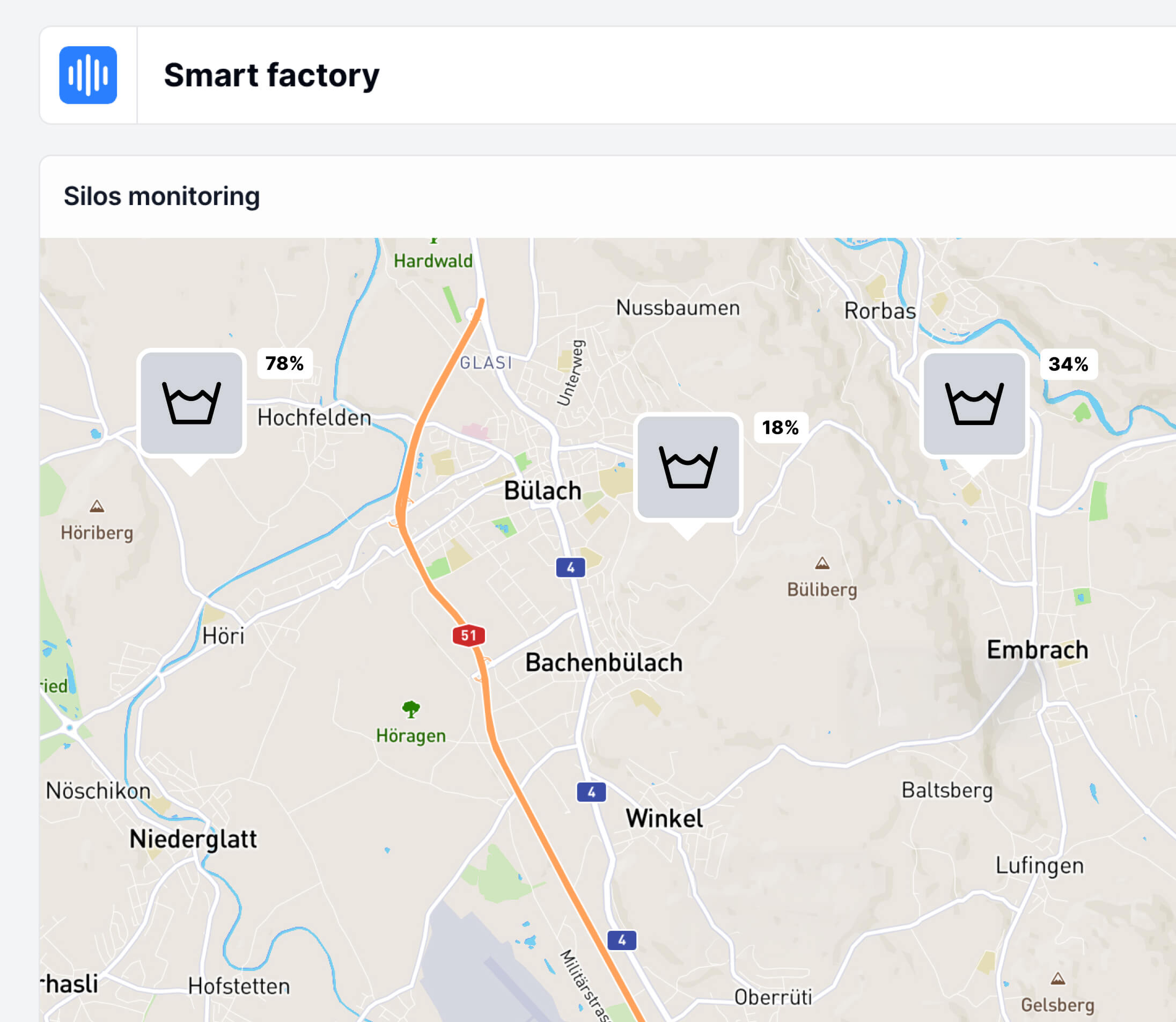 Aggregate fill level data across assets and sites on one platform. Combine inventory data with location context using GEO tracking to understand where assets are and how they are used.